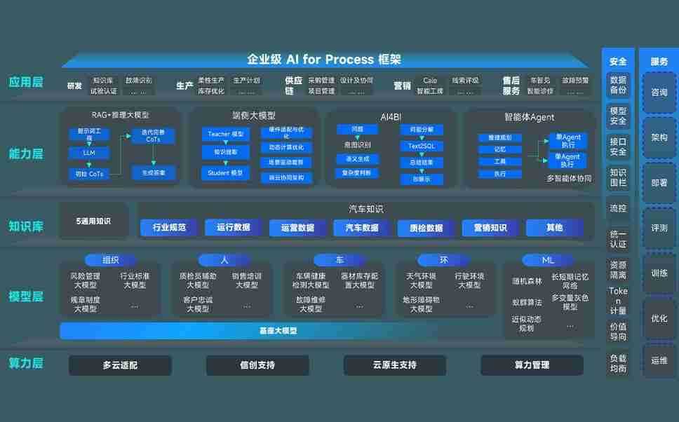 端到端的一站式AI工作空间深度融合了从企业战略规划到日常经营的全流程业务板块,,,,定向解决车企内部领域多、、、部门多、、链条长、、、场景碎片化等难题,,,,支持车企快速构建以AI为核心的生产力写作体系,,,,实现任务执行与AI能力的无缝集成与交互
